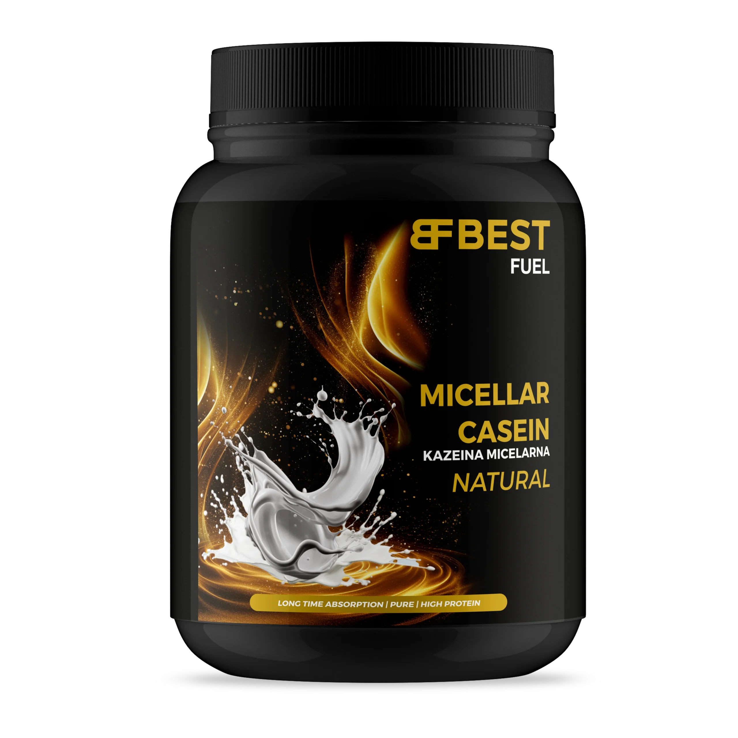 BEST FUEL MICELLAR CASEINE KAZEINA MICELARNA to najlepszej jakości odżywka wysokobiałkowa oparta wyłącznie na kazeinie micelarnej. Charakteryzuje się ona wysokim stężeniem protein, rozbudowanym profilem aminokwasowym (w tym aminokwasy rozgałęzione BCAA i pozostałe egzogenne EAA) oraz przedłużonym czasem absorpcji. Cechuje się bardzo niską zawartością tłuszczów i cukrów (w tym laktozy). Idealnie sprawdza się zarówno podczas budowy czystej masy mięśniowej, jak i redukcji zbędnej tkanki tłuszczowej.